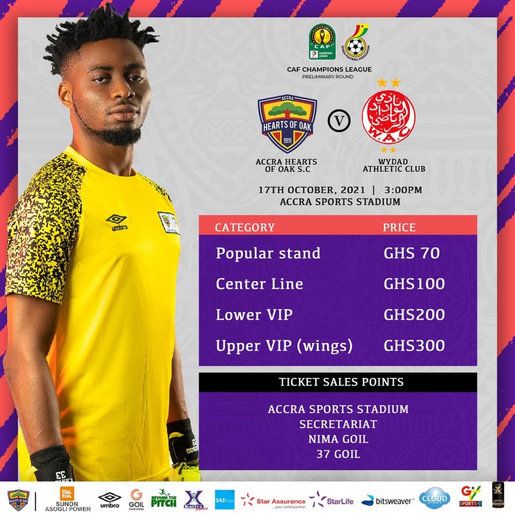 Hearts revealed gate fees for the crunch game on Wednesday where popular stand goes for GH 70, center line GHC 100, lower VIP GHC 200, and upper VIP GHC 300.